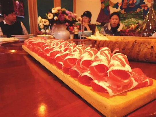内蒙古现代涮羊肉:选大尾绵羊的上胸、外脊、后腿等肥瘦适中的部位和羊尾,切均匀的薄片。涮羊肉的火锅锅底汤及调味佐料多种多样,配有土豆、白菜、豆腐等蔬菜同涮,可满足客人各种口味和荤素需求。