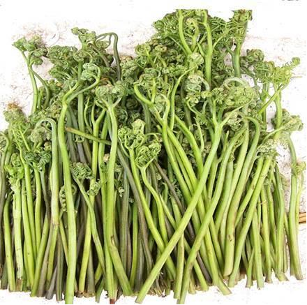 蕨菜又叫拳头菜、猫爪、龙头菜,属于凤尾蕨科。喜生于浅山区向阳地块,多分布于稀疏针阔混交林。其食用部分是未展开的幼嫩叶芽。维西蕨菜野生在林间、山野、松林内,是无任何污染的绿色野菜,不但富含人体需要的多种维生素,还有清肠健胃,舒筋活络等功效。蕨菜食用前经沸水烫后,再浸入凉水中除去异味,便可食用。经处理的蕨菜口感清香滑润,再拌以佐料,清凉爽口,是难得的上乘酒菜。还可以炒吃,加工成干菜,做馅、腌渍成罐头等。