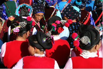 大理青山成年礼上的白族少女头饰