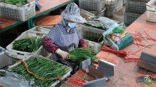日者镇种植的韭菜、菜心等蔬菜产品,每天外销20吨至北方和广州、深圳一带。