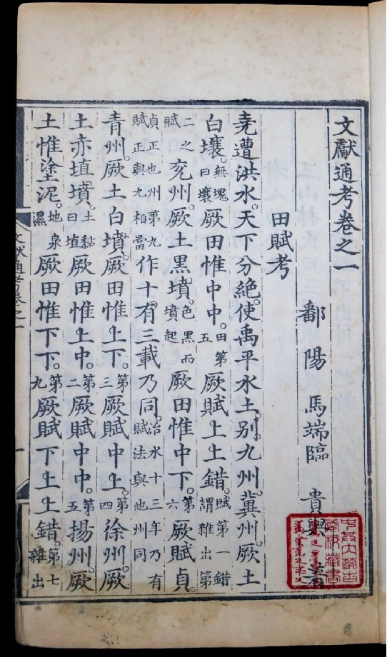 马端临(1254-1322),字贵与,号竹洲,饶州乐平(今属江西)人。十九岁时以荫补承仕郎,二十岁时漕试为第一。宋亡后,隐居家中读书写作,其在元至元二十二年(1285)前后开始编撰《文献通考》,历时二十多年,于元成宗大德十一年(1307)编纂完成。由于卷帙巨大,加上个人财力有限,《文献通考》并没有立即得以刊刻流传。直到延祐四年( 1317)道士王寿衍受元仁宗委派前往东南寻访“道行之士者”,发现马端临所撰《文献通考》“与唐杜佑《通典》相为出入”可补《通典》之缺,申请刊刻。仁宗采纳了王寿衍的建议,于至治二年( 1322)由西湖书院主持刊刻,马端临不顾年迈负责校勘,全书至泰定元年( 1324)始告刊成。