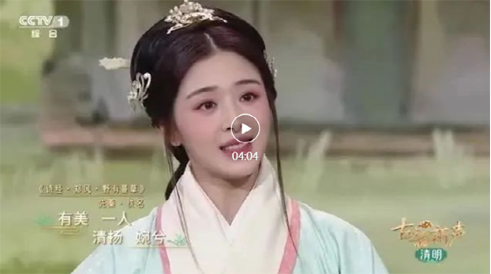 在央视《古韵新声》节目中,一曲《诗经·郑风·野有蔓草》再现2500多年前先秦清甜宜人的春日邂逅,获得网友热评。(视频来源:央视新闻微信公众号)