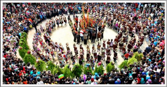 芦笙踩堂是广西融水苗族自治县苗族同胞中最具代表性的传统文娱活动,通常会在坡会节庆时举行。