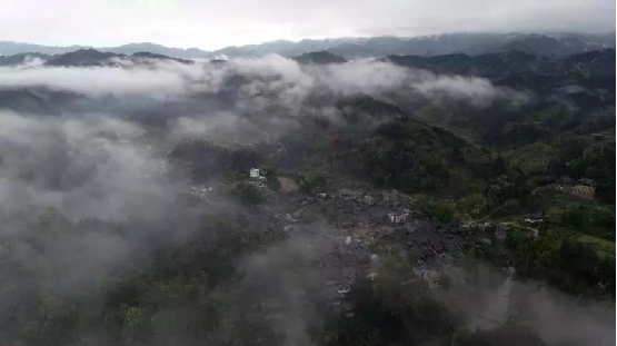 4月14日,无人机航拍的三江侗族自治县洋溪乡高露村中寨屯美景