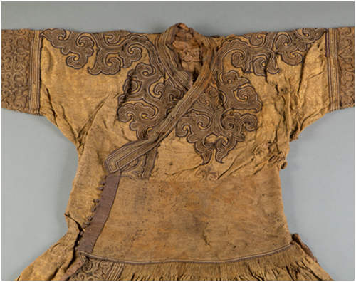 1978年出土于内蒙古包头达茂旗明水墓的蒙元辫线袍  内蒙古博物院馆藏一级文物