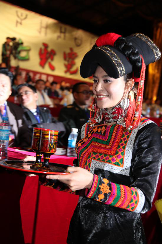 彝族姑娘给客人敬酒(刘军供图)