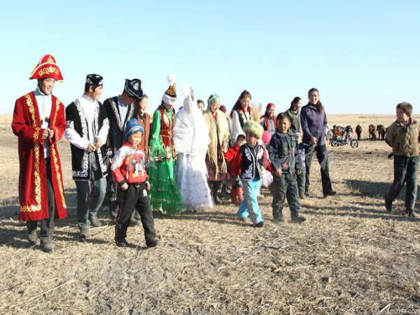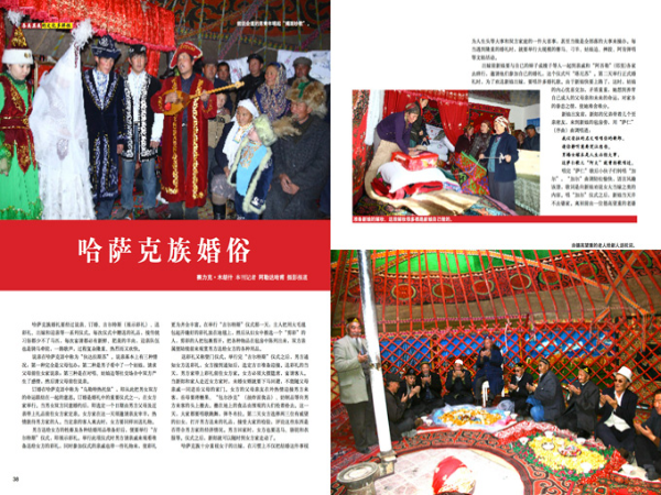 哈萨克族婚礼要经过说亲、订婚、吉尔特斯(展示彩礼)、送彩礼、出嫁和迎亲等一系列仪式。每次仪式中赠送的礼品,按传统习俗都少不了马匹,每次宴请都必有新鲜、肥美的羊肉,迎亲队伍也是骑马牵驼,一路歌声,过程复杂隆重、热烈而又欢快。
