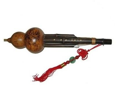 傣剧是在傣族民间歌曲和歌舞音乐的基础上发展起来的,并借鉴了汉族戏曲艺术的表现手段,流传于德宏、保山、临沧等傣族聚居区。傣剧包括多种男女唱腔,男腔多用羽调式,女腔多用徵调式。20世纪50年代以来,傣剧吸收了多种傣族民歌和舞曲,丰富了唱腔,增强了音乐的表现力。傣剧唱腔基本是上下句组成的乐段及其变化反复。由于唱词字数可多可少,因此唱腔乐句长短不一。过去,傣剧只用小堂鼓、锣、镲等伴奏,后逐步采用了多种民族乐器及西洋管弦乐器,组成新型的傣剧乐队。傣族的民族乐器属于吹奏乐器的有筚、葫芦箫(如图)、竖笛、木叶等;弹拨乐器有玎琴、口弦等;弓弦乐器有西玎(玎琴)、牛角玎(牛角琴)等;打击乐器有象脚鼓、光隆、光边、光邦、锣、镲等。象脚鼓、锣、镲的合奏是傣族器乐合奏的主要形式。