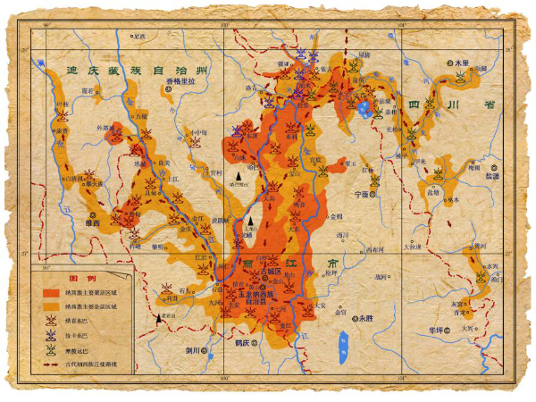 纳西族及东巴文化分布略图