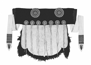 缀绣花圆布盘羊皮女披肩,主要流行于云南省玉龙纳西族自治县和丽江古城一带,是当地纳西族妇女的传统背饰,...