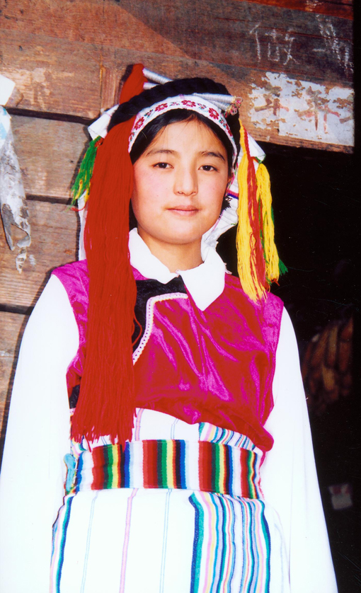 怒族男女服饰多为麻布质地,妇女一般穿敞襟宽胸、衣长到踝的麻布袍,在衣服前后摆的接口处,缀一块红色的镶...