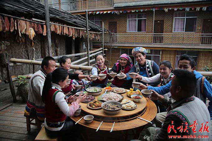 怒族习惯于日食两餐。其主食绝大部分以玉米为主。玉米的食用方法从爆米花逐渐发展为煮焖成咕嘟饭(类似玉米...