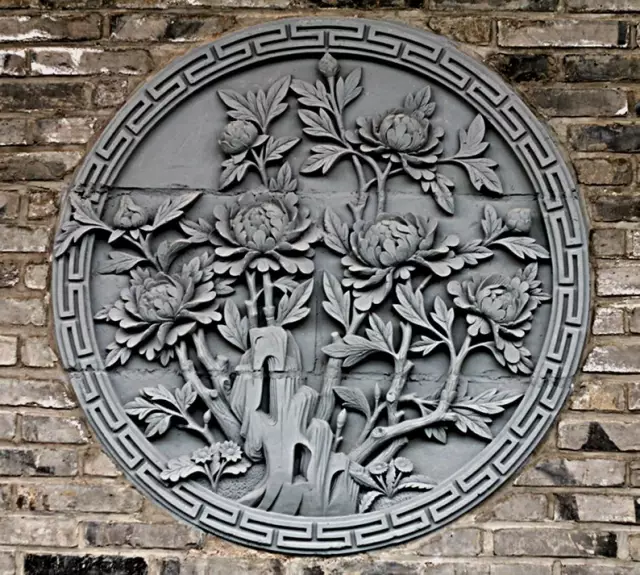 清代,北京紫禁城宫廷内墙面夹柱的通气孔也都使用砖雕,镂雕花鸟图案,牢固砖雕 而美观,且利于空气流通。