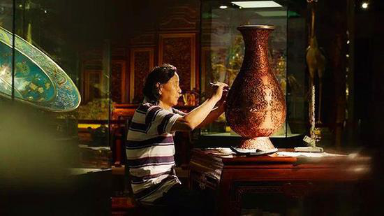 100多道工序,上百次的打磨,一次次的烧结镀金,每一个步骤都需要手艺精湛的艺人独立承担,清末时就有诗词赞道,“就中绝技高天下,压倒五洲景泰蓝。”
