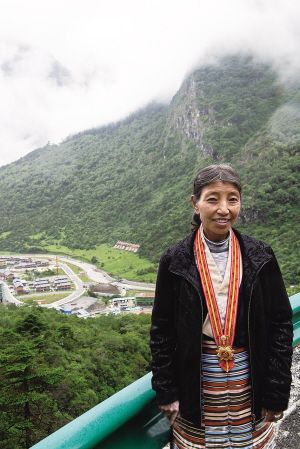 卓嘎在通向玉麦的盘山公路上留影。 新华社记者 孙瑞博摄