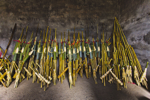 “别以为芦笙只是一门简单的竹制吹管乐,制作芦笙门道多着呢!”杨枝光拿起一只芦笙先给我讲解芦笙的构造:芦笙由笙斗、笙管、共鸣筒、簧屯、箍等部件组成。笙斗是木制呈葫芦瓜状构建,笙斗是空的,是芦笙的声腔。共鸣筒则是连在笙管上的大竹筒,作用是放大声音……