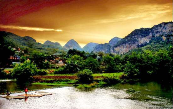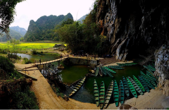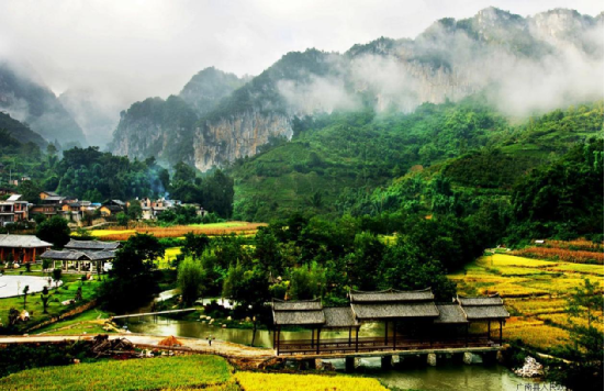 昔日坝美村房屋以落地和半楼居两种杆栏式风格为主,主屋用木板架成,四周用树枝围拢,再敷上泥巴、牛粪拦合成的粘土,非常通风、保暖,上盖瓦顶、抱厢、前置凉吧或围栏,楼上住人,楼下关牲畜、堆杂物、当地壮族称麻栏楼。《汉书·地理志》就有壮家“男耕女织”的记载:“男子耕农,种稻麻,女子蚕桑织绩。”千百年来的刺绣技艺,之所以能够代代相传,延绵不绝,很大因素缘于它是不少壮族妇女赖以为生的基本技能。村民的食物、衣物、生产工具、生活用具基本上是自己生产,寨子中随处可见转动的水车、独木舟、人工石磨、水磨、木碓、水纺织机、木榨油机、独木风箱、木梨粑、木背柴架、木梯、木菜板、木灯架、木三角独轮推柴车、竹木水桶、葫芦酒壶、木储物器、石缸、石磙等生产生活工具。它们的古朴粗拙样,凝固了历史,传递着远古的文化信息。自2019年3月以来,坝美景区暂停对外开放进行提质升级改造。经过一年多的建设,一期工程已完成投资4亿元,景区内基础设施及旅游产品业态都有了质的提升。以世外桃源坝美景区为核心,以壮族文化为内涵,以稻作田园景观、普千村、冷热泉等内容为延伸,打造国内首个集田园休闲度假、壮族文化体验、艺术创意创作、宗教朝圣等多重体验为一体的旅游度假区,将通过改造民居、再造田园、以水为魂等方式打造现实版的“桃花源”。