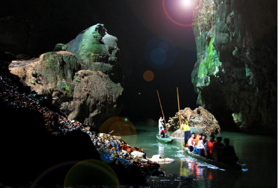 坝美,为壮语译汉语为:坝—冲口,美—树 ,因居住的冲口树木多而得名。坝美村位于珠江流域西江水系驮娘江上游的阿科河畔。属喀斯特地貌,区域内山峰奇特,河谷幽美,阡陌纵横,河流山泉蜿蜒奔流,溶洞层叠散布在山体峰内,冬无严寒,夏不酷暑,气候宜人。因四面环山,不通公路,进出寨子主要靠村前村后两个天然的石灰溶岩水洞,村民们要摸着岩壁趟水、撑竹筏、划独木舟、坐小船,经过950米长的幽暗的“出水洞”和680米长的“汤拿洞”才能进出。由于地处偏僻,交通不便,基本不与外界交往,多年来坝美村长时期与外世隔绝。坝美村水源丰富,气候温和,自然生态环境未被污染,负氧离子质数高出城市数倍,游人在此休憩,心旷神怡,是一个温湿润,四季宜人的旅游胜地。就生态环境和历史渊源来说,《桃花源记》问世1500多年,只闻其名,不见其实。相传除唐代确认湖南省桃源县的桃源洞为其原型外,目前全国就有冠名“世外桃源”的地名16个之多。而今天的坝美,不仅十分相似,而且还神似东晋文学家陶渊明笔下所描写的“林尽水源,便得一山。山有小口,仿佛若有光;便舍船从口入……土地平旷,屋舍俨然,有良田美池桑竹之属;阡陌交通,鸡犬相闻……”的世外桃源。而且在当地村民中有许多历史传说:北宋皇祐四年(公元1052年),壮族起义领袖侬智高在邕州(南宁)昆仑关被狄青打败后,退入以其继父侬夏卿为首领的特磨道(广南)后,至和二年(1055年),宋朝廷又派杨文广领兵进剿,侬智高在突出重围转至阿科(今广南县坝美镇治所)与宋军周旋,终因寡不敌众而离开阿科转战于丘北、开远、蒙自、元江等地,后到大理不知所终。