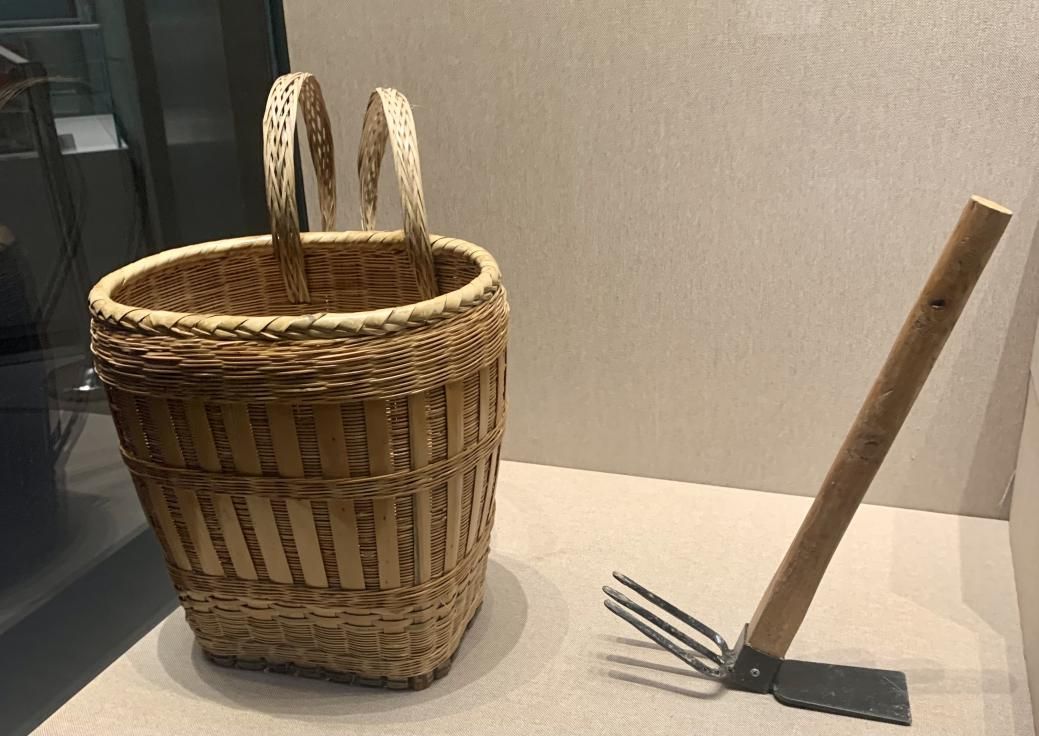采药小背篓和药锄(许觊佳摄于贵州省民族博物馆)